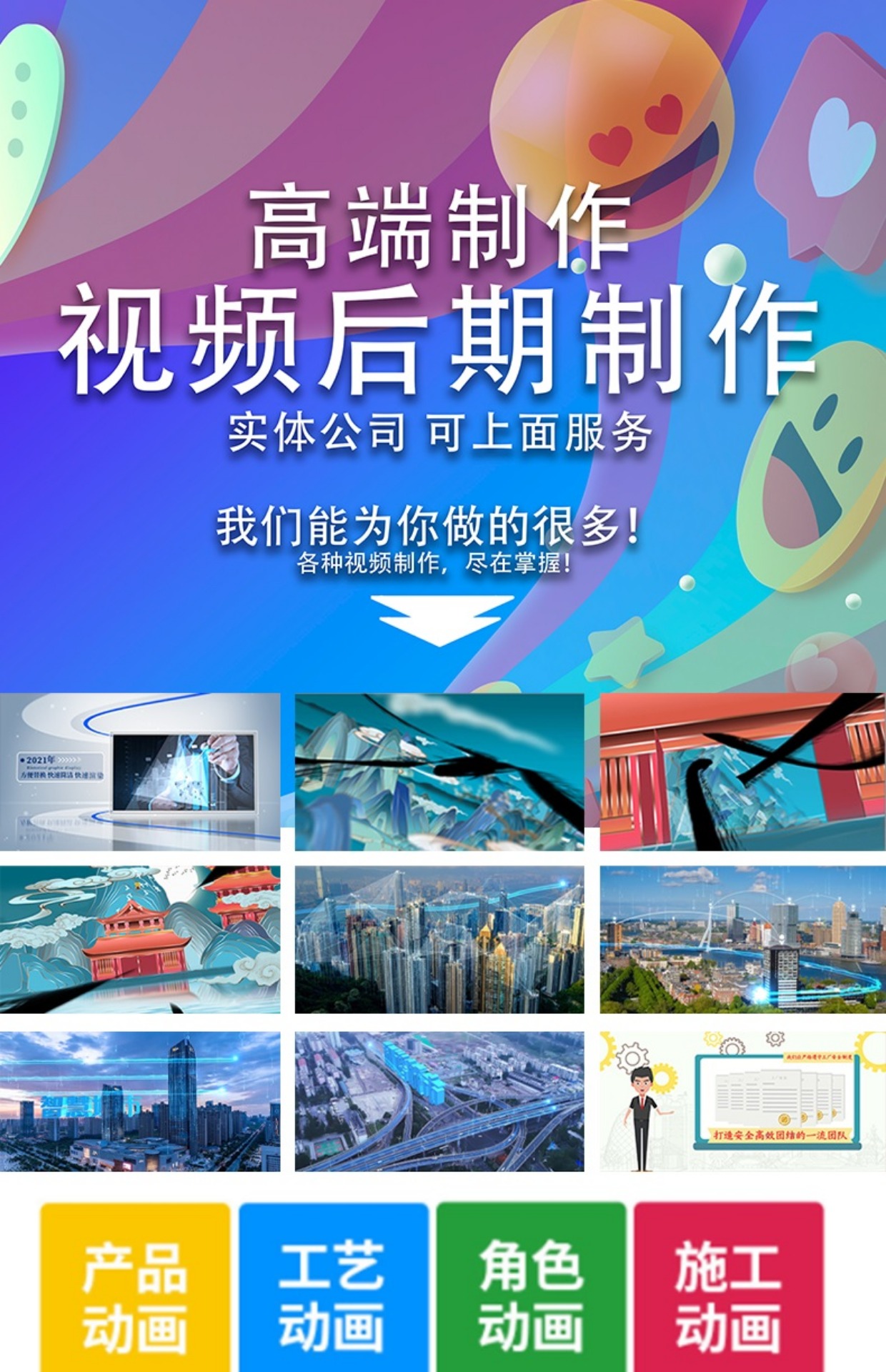 > 短视频制作剪辑代做ae特效mg动画产品主图拍摄企业宣传片